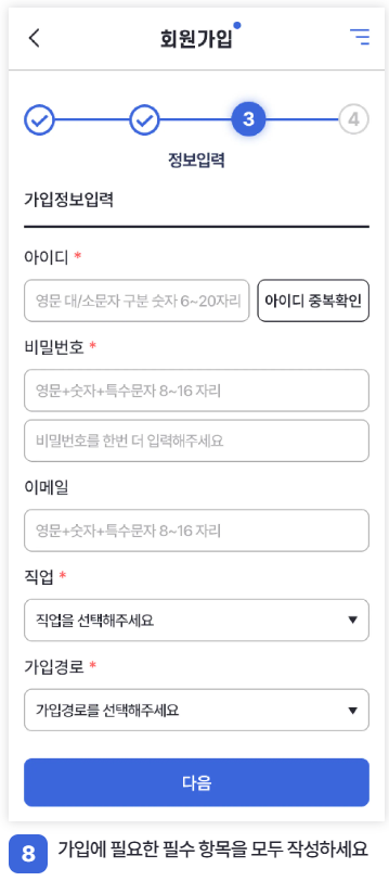 앱 가입 방법은 아래와 같습니다.